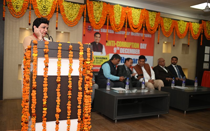 Sri Sharda Group of Institutions organized a grand event to mark the International day of Anti-Corruption on 9 December.The event was graced by the esteemed presence of the Chief Guest Mr. A.K Sharma (Cabinet Minister-Urban Development & Electricity), Guests of Honor Mr. Maithili Sharan Gupta (Former IPS, Ex D.G.P, Madhya Pradesh) and Dr. Manoj Pandey (President-LUACTA ). Mr S.R. Sharma (Astrologer, Social Worker) was also present.