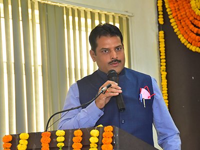 The programme began with the auspicious lighting of lamp by the Chief Guests Prof. Anil Kumar Shukla( Vice Chancellor, Khawaja Moinuddin Chishti Language University) and Mr Pawnesh Pandey( Ex Chairman ASSOCHAM ) The students also received words of wisdom and good wishes for this new journey by the dignitaries and also by Prof. Dr Vivek Mishra (Dean).
