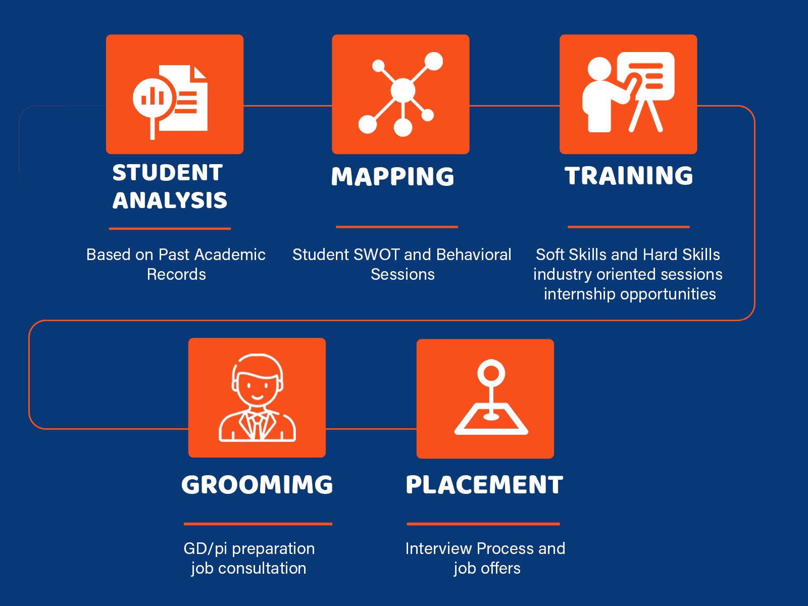 Career counseling service which is being offered by faculty and trained professionals in different functional areas is a vital factor here. A formal and well planned structurally designed Personality Development Program, wherein vital soft skills are imbibed by trainers and corporate alike.